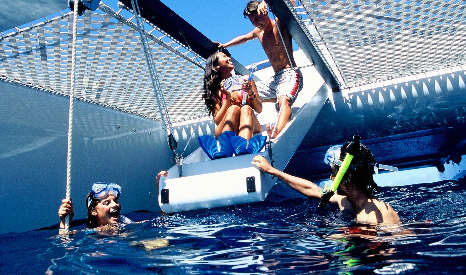 Set sail and anchor at fabulous snorkel reefs teeming with tropical marine life and Hawaiian green sea turtles.